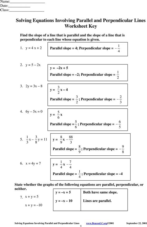 Equations Of Parallel And Perpendicular Lines Worksheets Answer Key