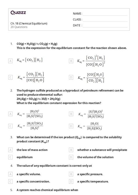 Some of the worksheets displayed are chem 1 chemical equilibrium work answer keys,. This value relates to the equilibrium expression defined on the basis of this way of balancing the reaction equation; 1) write all equilibrium equations 2) write all equilibrium.