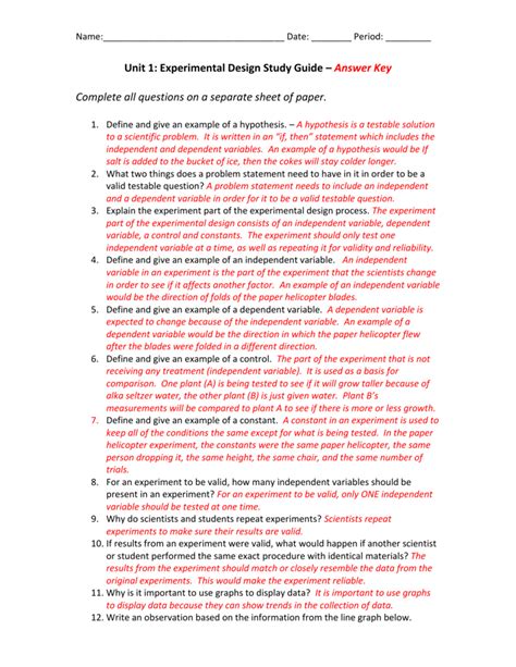 Experimental Design Practice Worksheets Answer Key