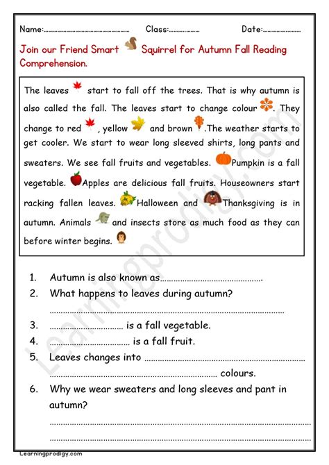 Web Fall Reading Comprehension Interactive And Downloadable Worksheets.