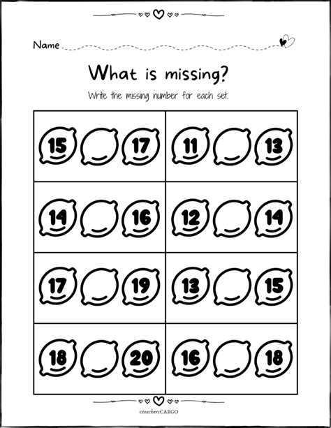 Below are some worksheets to help them count with their favorite objects. Students fill in missing numbers from 1 to 100. These worksheets include multiple fill in the missing number worksheets to use at math centers, asextra practice, or as an assessment tool.⭐️ low ink and no prep!!!