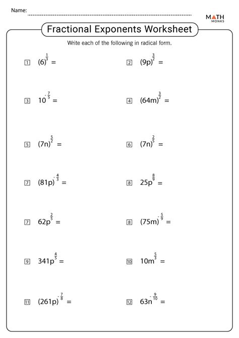 Fractional Exponents Worksheets. Write in fractional exponent format: Web memo line for the exponents and radicals worksheet.