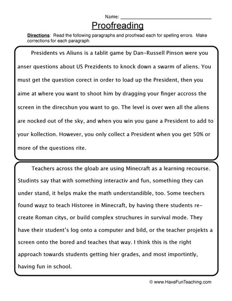 Web Help Your Students To Strengthen And Improve Their Proofreading And Editing Skills With These Proofreading Practice Worksheets.