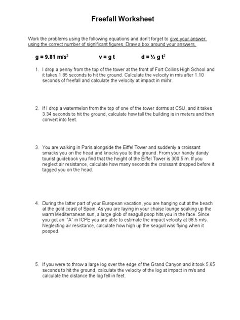 The files are in microsoft publisher. These chapters won't be a perfect fit for your syllabus,. Freefall worksheet work the problems using the following equations and don’t forget to give your answer using the correct number of significant figures.